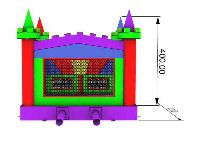 This 13ft castle bounce house is one of our smaller sized bounce houses but also one of our most affordable. It is vibrant in color and great for birthday parties. This commercial grade 13ft castle bounce house is made out of heavy duty PVC Tarpaulin. It includes an air blower, a carry case and a repair kit.