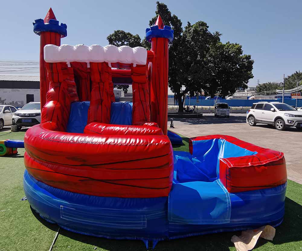 Our 25ft inflatable combo bounce house with slide is one of our most popular bounce houses. This commercial grade castle bounce house is made out of heavy duty PVC Tarpaulin. It includes an air blower, a carry case and a repair kit.