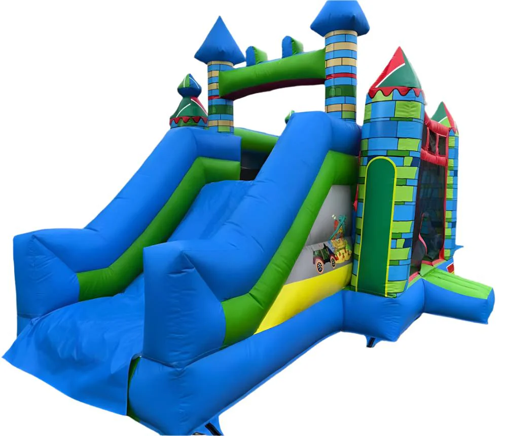 We can also custom UV print your logo, phone number, business name, website, etc. on this castle bounce house.