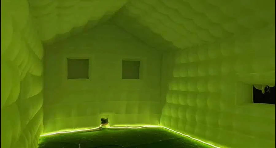 Our inflatable nightclub with pitched roof has all the bells and whistles. Comes with LED strip lights for the inside that you can set to different color modes and control with a remote.