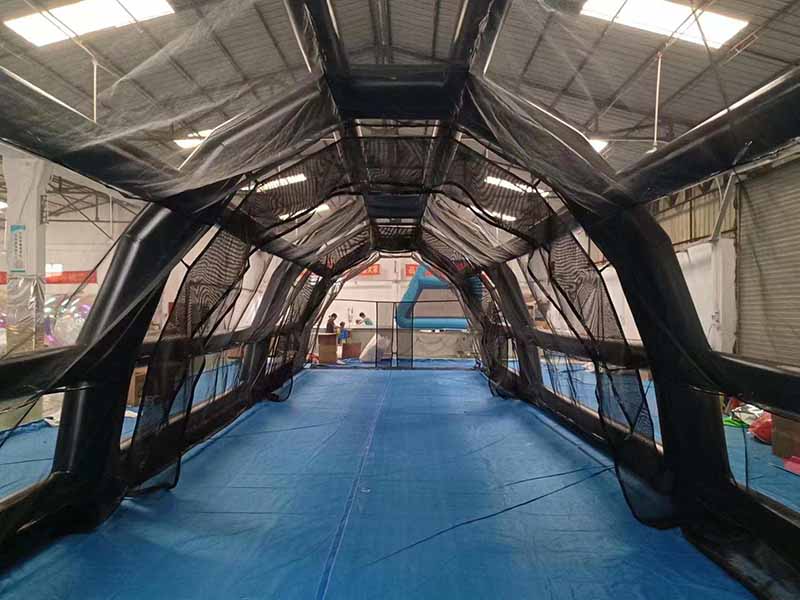 Our inflatable batting cages are portable, easy to store, heat-sealed and inflate quickly. Have your logo and/or team name added for no additional cost. Made out of high quality commercial grade PVC with durable batting cage netting.