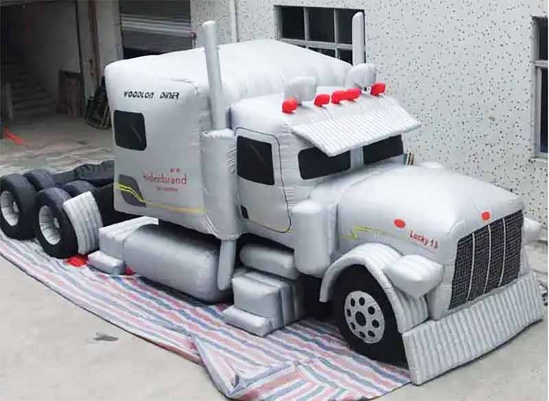 We can fully customize a life sized inflatable truck or inflatable semi truck to fit your requirements, including colors, size, logo placement, UV print and more. The pictures shown on this page are some examples of custom inflatable trucks made for others. You can order one of these designs or have your own custom colors and graphics UV printed on it.