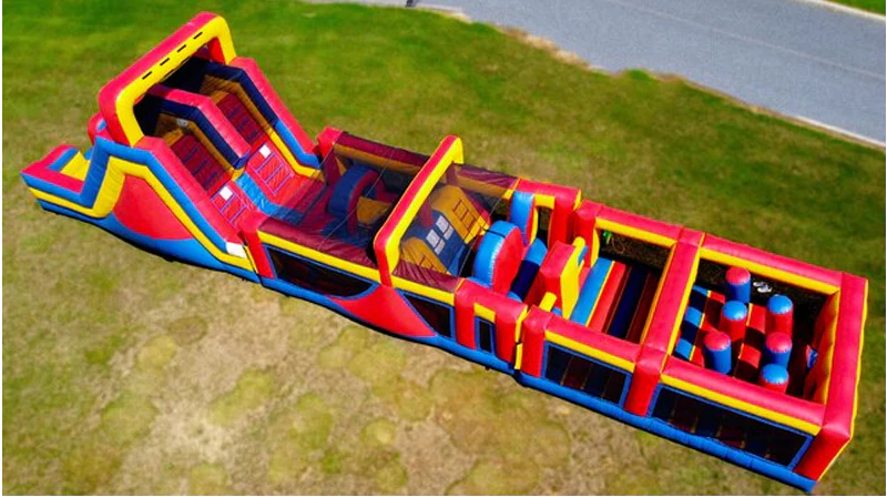 Our large 65ft Max Challenge Inflatable Obstacle Course is a big hit at teen or adult parties. Best suited for ages 6+ due to the size and challenging obstacles.