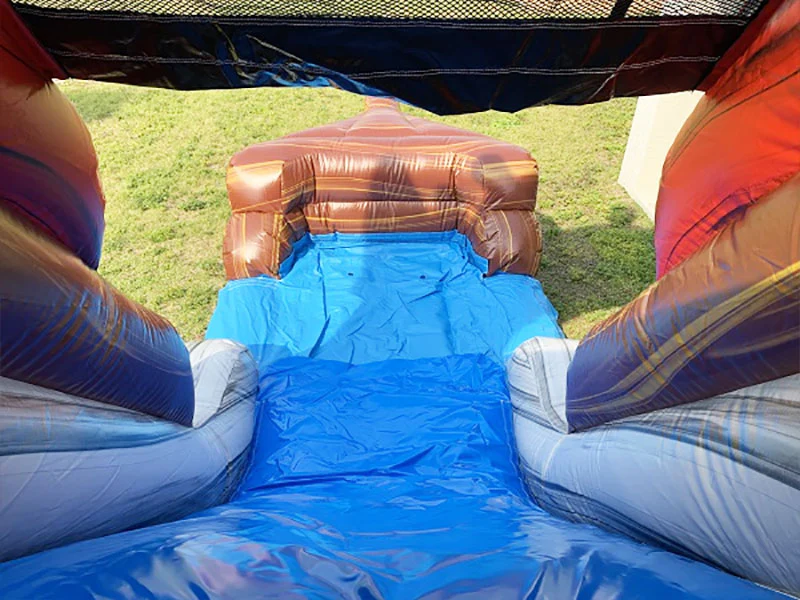 Our 22ft inflatable pirate ship bounce house is very popular for birthday parties. This commercial grade pirate ship bounce house with slide is made out of heavy duty PVC Tarpaulin and can be used wet or dry. We can also custom UV print your logo, phone number, business name, website, etc. on the pirate ship bounce house with slide.