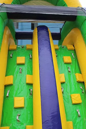 Hours of fun racing through this square shaped inflatable 30ft obstacle course. Turn the corner to b presented with a bounce area then move onto scaling a giant climbing wall. On the other side of the climbing wall is a double lane slide taking you to the end.